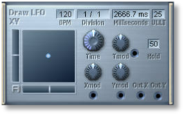 As above, but you can "draw the two-dimensional Lfo patterns in realtime by dragging the point on the XY surface." (Flexor Manual)