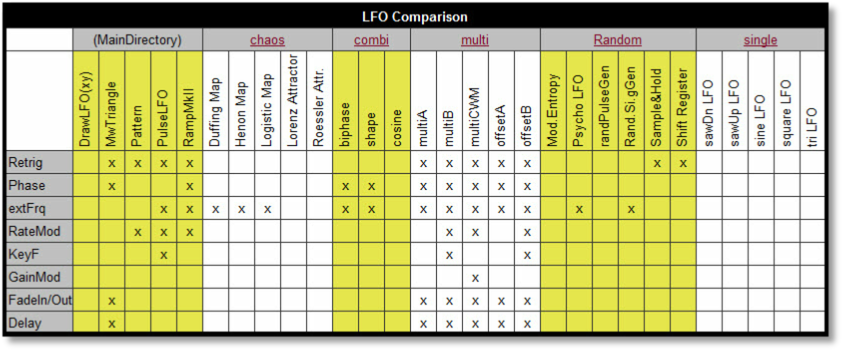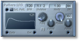 a low frequency oscillator that offers a selection of 128 different complex waveforms. It can be tuned by HZ or BPM and has a retriggering function.