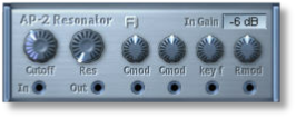 "Two-Pole Allpass. It creates a resonant peak at the cutoff frequency, and does not block any frequencies. It is handy for boosting certain frequencies in a sound, or for creating interesting resonating sweeping sounds." (Flexor Manual)