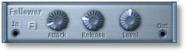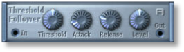 Threshold Follower is an envelope generator with a threshold that is compared to the incoming audio signal's amplitude. When the signal's amplitude exceeds the selected threshold, the envelope's attack stage is triggered.