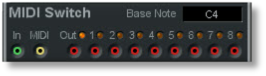 Switching occurs when appropriate MIDI note events are received. Example for [BaseNote] C3: C3=>swOut1; C#3=>swOut2 etc. dspLoad 18.50/15.20/15.30