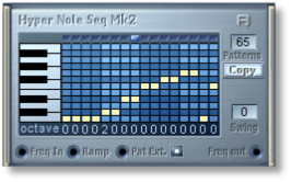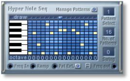 FreqOut->[ControlSmoother]>Osc FreqIn. Monophonic. Default installation path: .../-=Flexor=-/Sequencers/