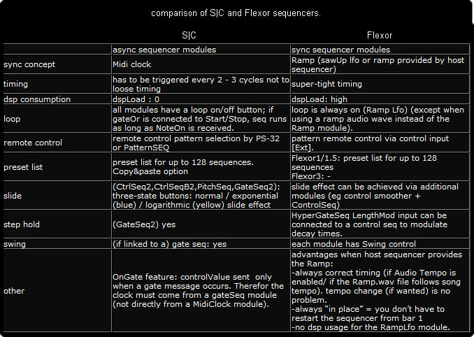 Flexor: Ramp modules see here, ControlSeq and NoteSeq modules here, GateSeq modules here.