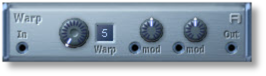 "This shaper 'Warps' the incoming audio signal: it divides the signal into several amplitude ranges (Warp factor), and folds them back, inverted, to be aligned side by side. Warp starts its division at both clipping points. The amount knob sweeps from minimum to maximum division as indicated by the Warp factor. The Warp process sounds a bit like sync, as it changes the harmonic structure of the wave according to its amplitude."