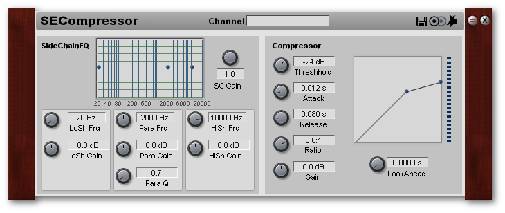 SideChainEQ compressor: a Compressor that uses the EQed input signal as SideChain signal.Example:if highs are boosted, and the other two bands are lowered, the compressor will react only to high frequencies.
