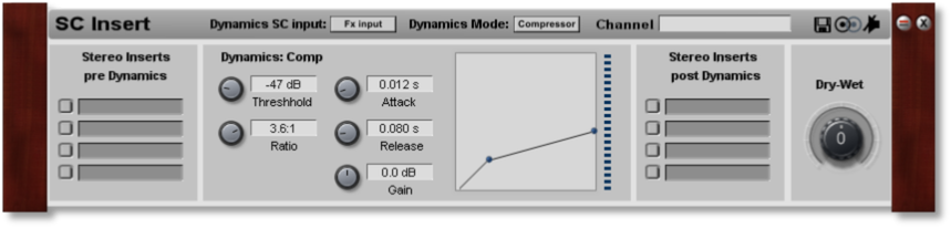 note: if you want to use the extern SC inputs, the device cannot be used as an insertFx (in a mixer etc). Connect it separately in your Project window.