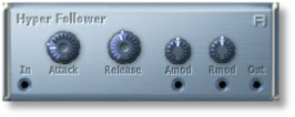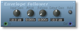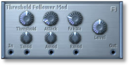 Threshold Follower is an envelope generator with a threshold that is compared to the incoming audio signal's amplitude. When the signal's amplitude exceeds the selected threshold, the envelope's attack stage is triggered.
