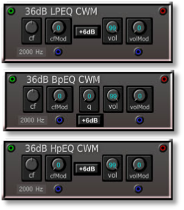 36dB EQs with gain and freqency modulation.