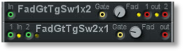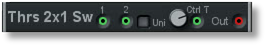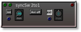 Sync switching: switching occurs whenever a signal connected to the little Ctrl in input exceeds a given threshold, controlled by the CtrlT potentiometer. Uni/Bipolar button for threshold signal.