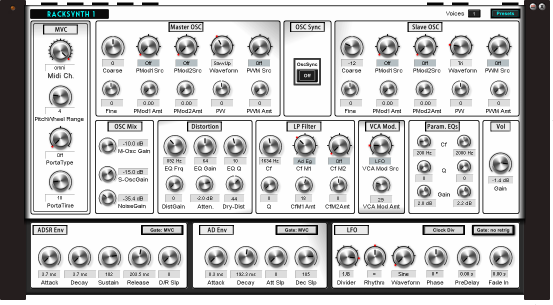 Adsr and Ad envelopes can be triggered by the internal MVC or an external Gate Sequencer like GateSeq1 or a Modular device.