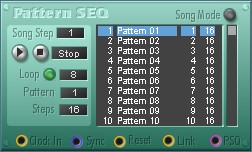 The PatternSequencer is a sequencer of its own; it has no reset input and has to be started manually (meaning that it cannot be integrated in a midi sequencer setup).The [Sync] input has to be connected with the Sync out of a gate seq or, preferably, a MDS8 module, [Reset] to Reset inputs of connected seq modules, [Link] to Clock inputs of connected modules, [PSQ] to PSQ inputs of connected modules.