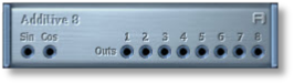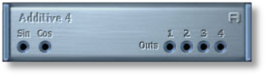 "a wave-shaper that uses sine and cosine waveforms to generate the first 4 harmonics of the fundamental frequency. The harmonics are aligned at 0 degrees which makes it ideal for additive synthesis. It has two inputs (sine and cosine – sine at 90 deg) and 4 outputs (one for each harmonic overtone)." (Flexor Manual) Max poly:16