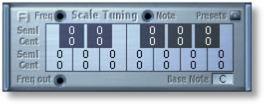alter the pitch of individual notes to create custom tunings. This makes it ideal for creating various exotic scales, symmetric scales, pentatonic scales, Arabic maqamat, Indian ragas and so on. It is equipped with dozens of scale presets to act as starting points for your microtonal explorations." (Flexor Manual) Poly 16